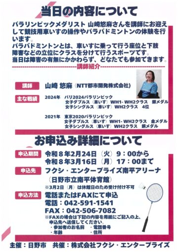 パラメダリストに学ぶ!競技用車いす体験とパラバドミントン教室